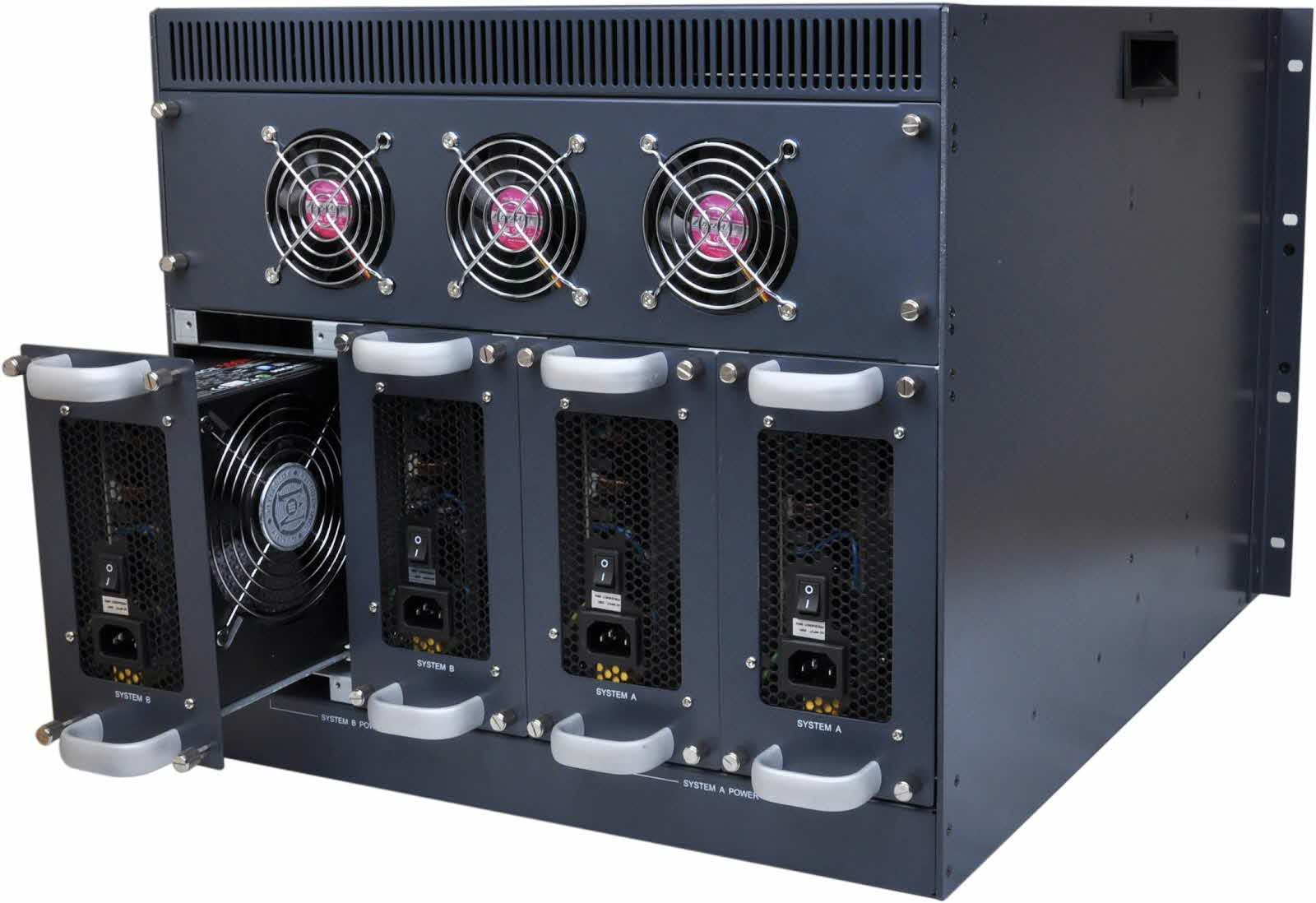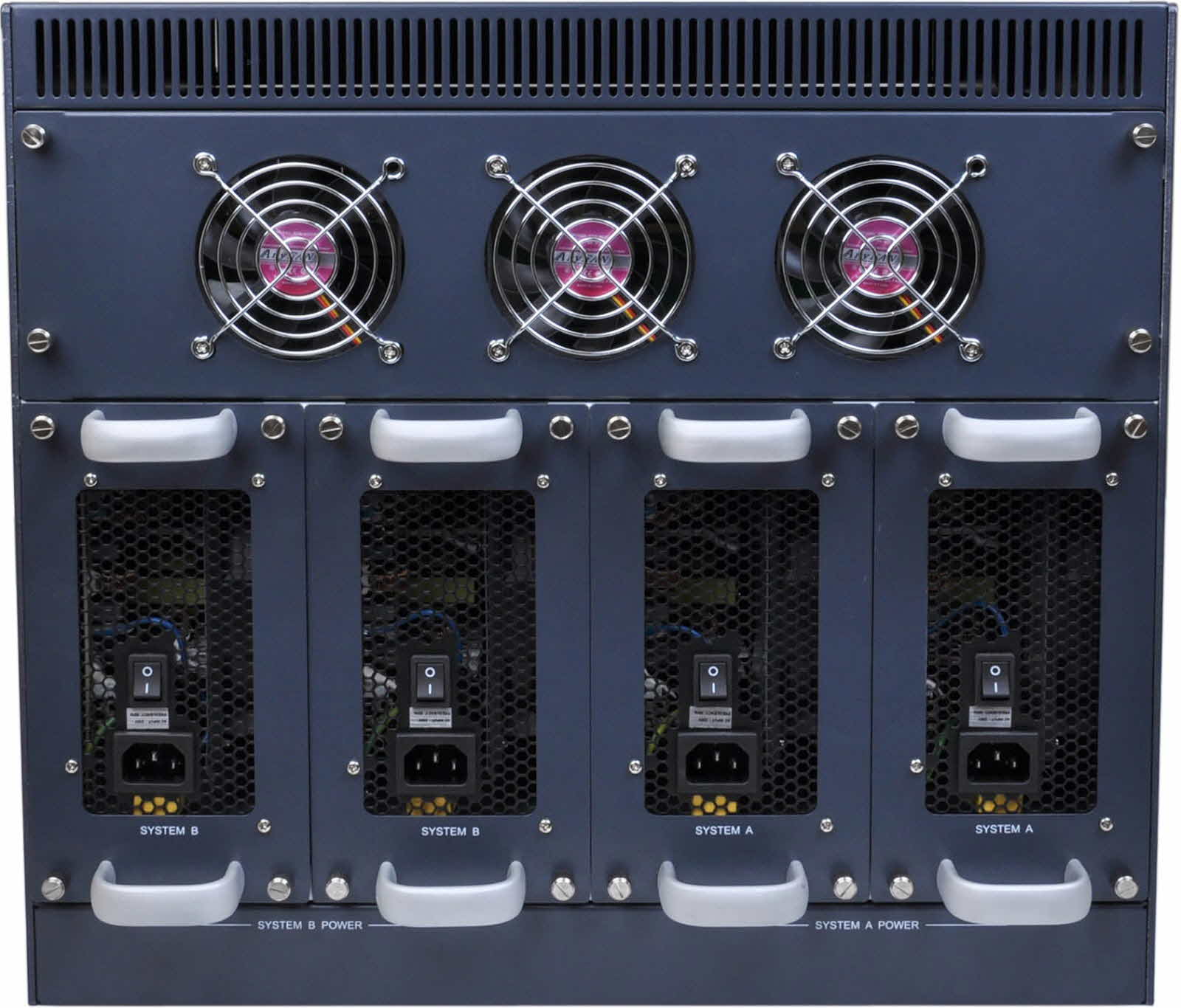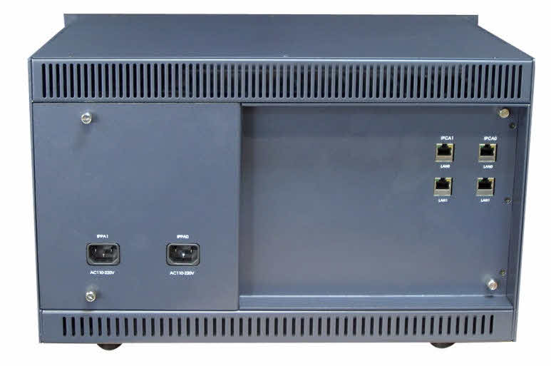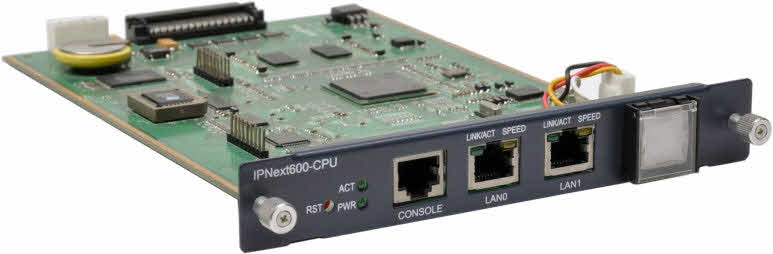 The IPNext600 SIP Call Manager System provides the Active-Standby system duplication features for fault tolerant architecture. For the system duplication, IPNext600 supports dual hot-Swap CPU boards at the front part of chassis. It also comes with two gigabit ethernet port and console port per CPU board. And IPNext600 supports dual module type power supply.