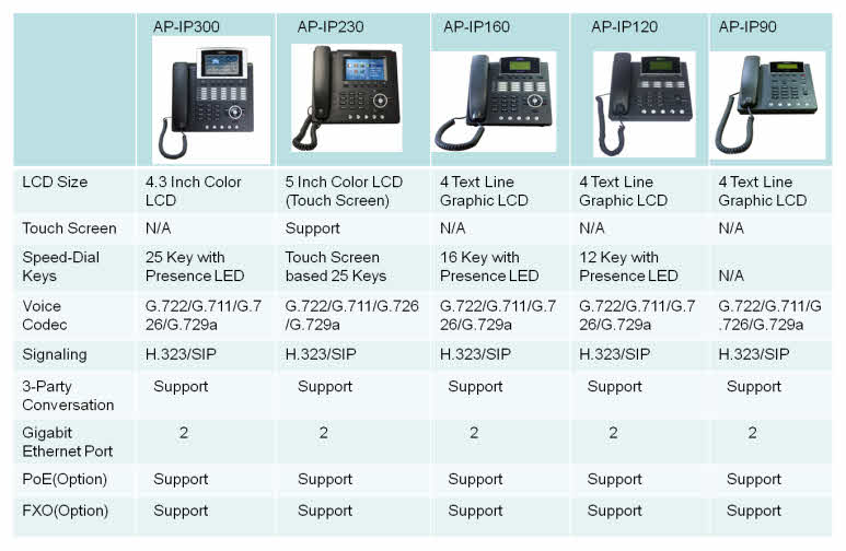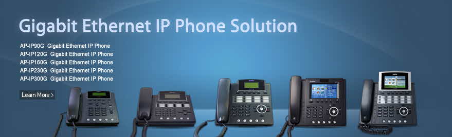 AP-IP160G Gigabit Ethernet IP Phone delivers not only fully featured IP telephony services, but also various supplementary services to users. It features advanced phone directory, voice mail, CID(Caller ID), call transfer on site or at a remote site. One of its greatest services is IP broadcasting feature which enables AP-IP160G to offer voice broadcasting service, incorporated with in-house broadcasting system.