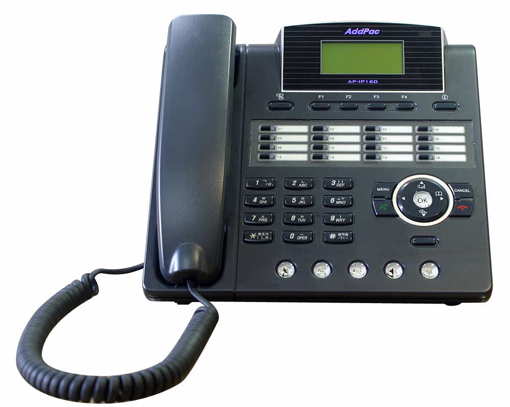 AP-IP160G Gigabit Ethernet IP telephone combines AddPac's field proven VoIP technology and IP voice broadcasting technology. AP-IP160G is market-ready IP telephone which provides a full suit of remarkable functionality compared to other typical IP telephones. Apart from telephony service, it delivers IP voice broadcasting service supporting external MIC/Line-in, Line-out interface for various input/output devices such as headset, Amp or speaker. In addition, it provides high level information display with large size LCD mounted. Since AP-IP160 supports diverse voice codecs according to bandwidth environment, it can be deployed anywhere on the internet, ensuring optimal voice quality by leveraging the latest QoS technology. Furthermore, installed along with IPNext180, IPNext190, and IPNext500 on comprehensive IP-PBX system of AddPac Technology, it not only improves operation offering an wide variety of features such as Music on Hold, Coloring service, Call Transfer but also provides the easy-to-use, intelligent IP telephony service enhanced by MS window based Smart Messenger.