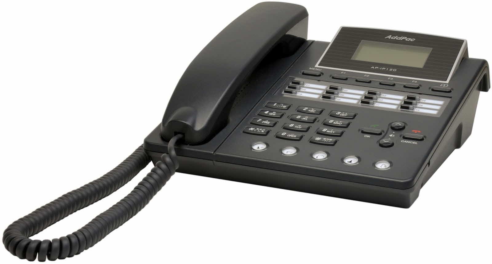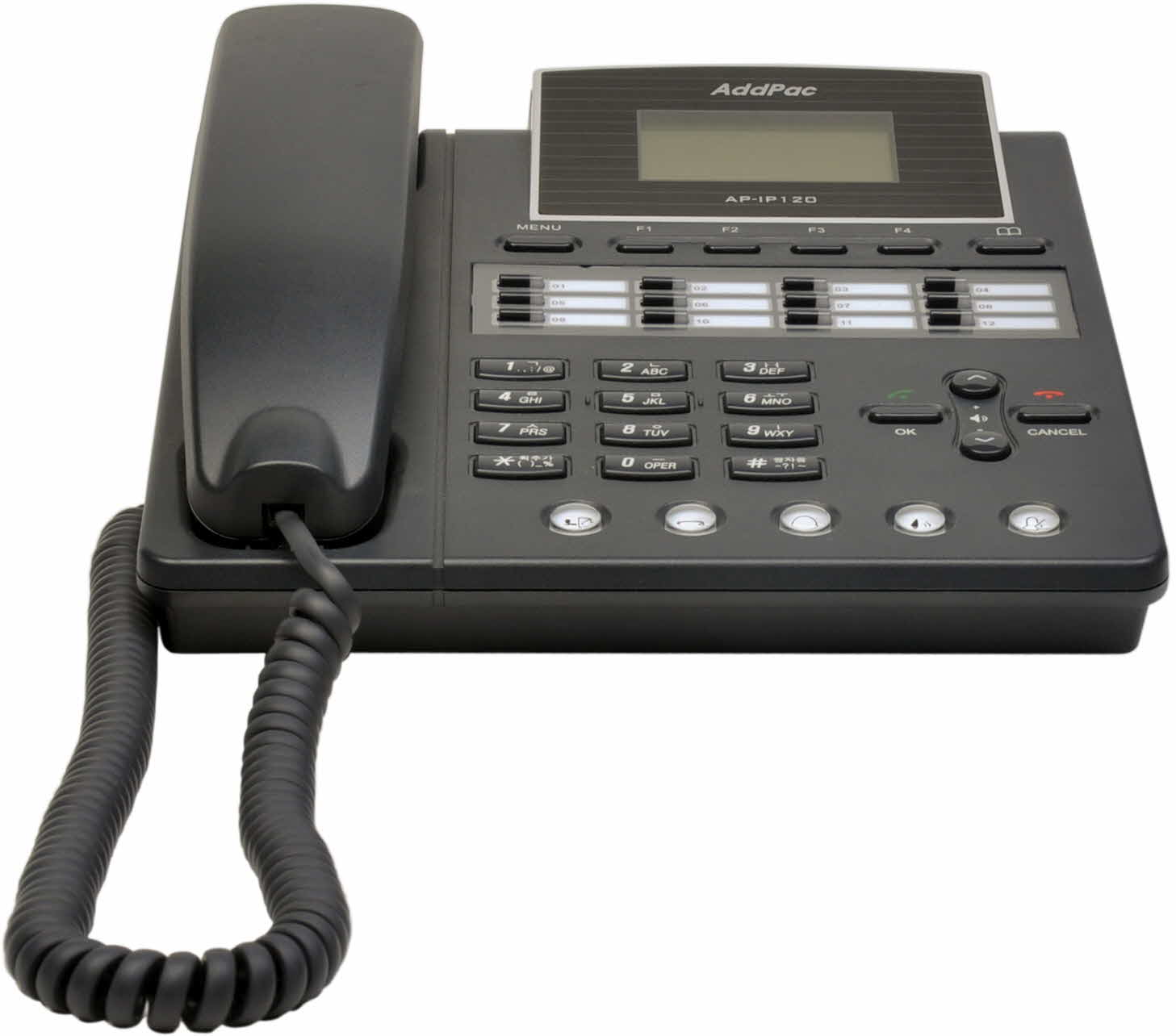 AP-IP120GGigabit Ethernet IP telephone combines AddPac's field proven VoIP technology and IP voice broadcasting technology. AP-IP120G is market-ready IP telephone which provides a full suit of remarkable functionality compared to other typical IP telephones. Apart from telephony service, it delivers IP voice broadcasting service supporting external MIC/Line-in, Line-out interface for various input/output devices such as headset, Amp or speaker. In addition, it provides high level information display with large size LCD display mounted. Since AP-IP120G supports diverse VoIP codecs according to bandwidth environment, it can be deployed anywhere on the internet, ensuring optimal voice quality by leveraging the latest QoS technology. Furthermore, installed along with IPNext180, IPNext190 and IPNext600 on comprehensive IP-PBX system of AddPac Technology, it not only improves operation offering an wide variety of features such as Music on Hold, Coloring service, Call Transfer but also provides the easy-to-use, intelligent IP telephony service enhanced by MS window based Smart Messenger.