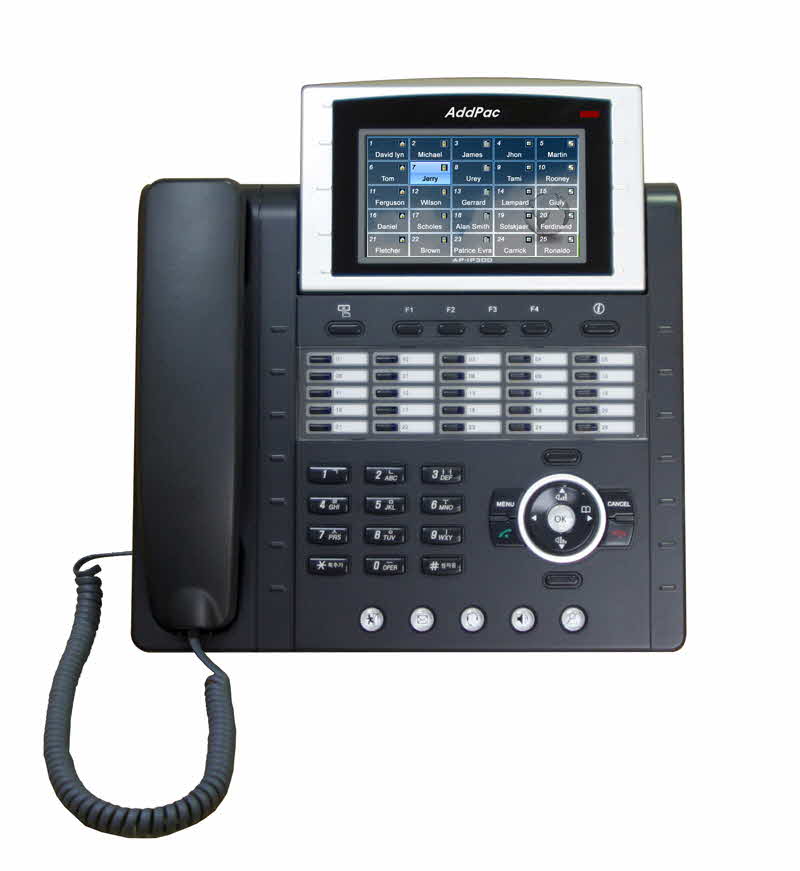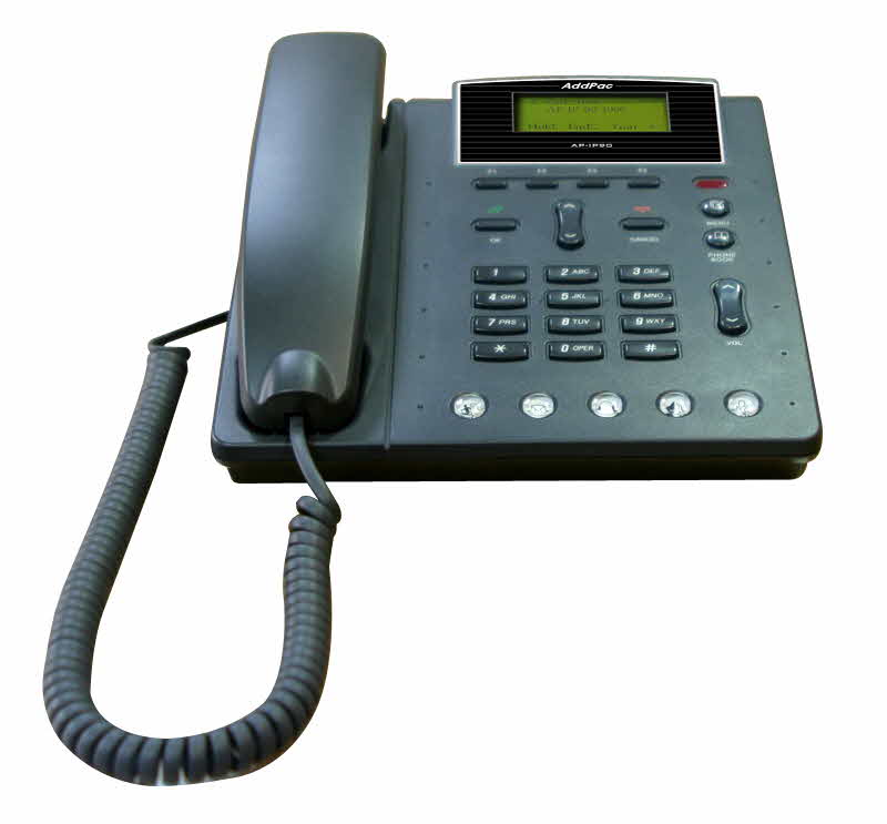 AP-IP90G IP phone is designed to provide enhanced IP telephony functionality to meet the wide range of business user requirements. This cost effective IP phone optimally delivers rich featured voice telephony service on ordinary internet infrastructure as well as AddPac IP-PBX environment on local LAN as a fully featured IP extension for the complete AddPac VoIP solution.
